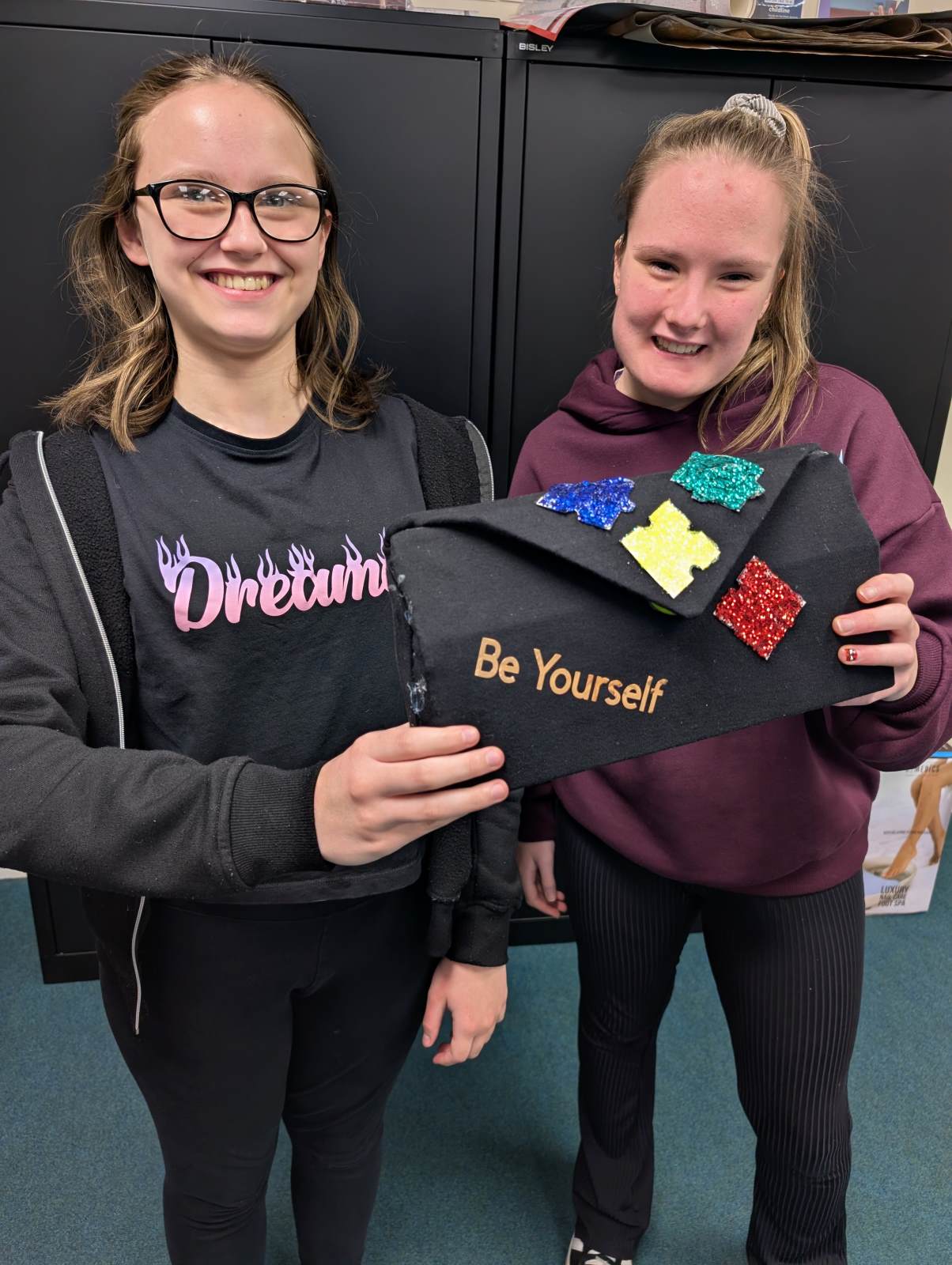 The girls have completed the bag, which was designed by Olivia, the ‘Neurodiverse’ symbol that represents autism was a favourite choice from all the group.