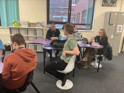 We were delighted to welcome another visit from our Chief Executive Head Teacher, Mr Gavin Lyons, to our New Bridge Parliament student representative Monday lunch meet-ups. Mr Lyons attended the session as part of his ongoing commitment to strengthening student voice and ensuring that learners remain at the heart of decision-making across the college.