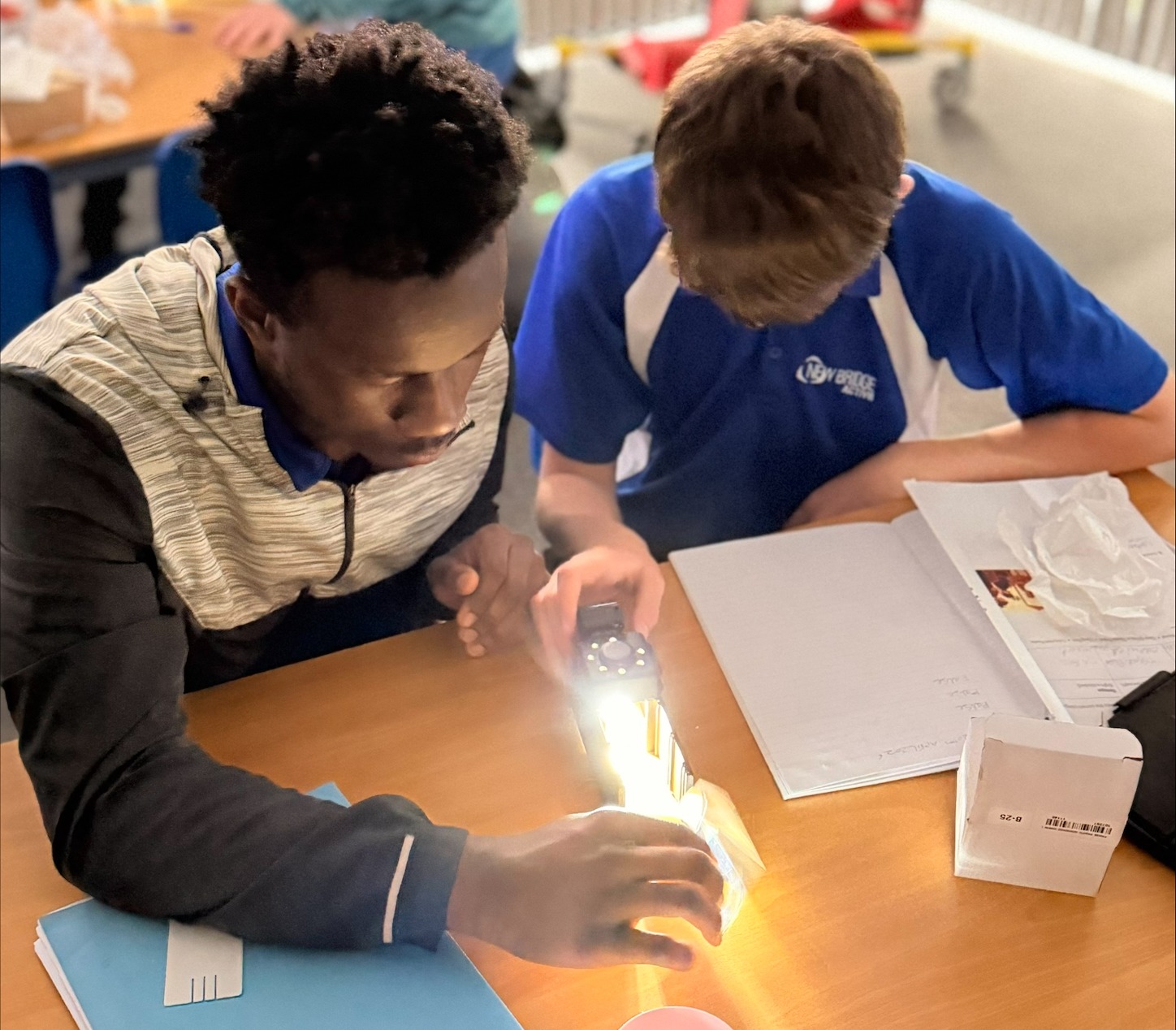 Students have used glass blocks to view the bending of light. They’ve also investigated what happens when light passes through a glass prism to create their very own ‘indoor’ rainbows!